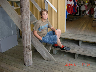 Ludvig och Batman inför sista båtfärden innan hemresan.